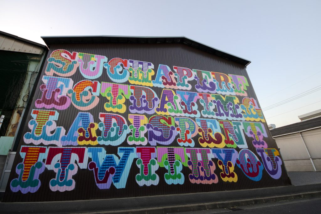 NOMALARTCOMPANYが企画に関わったこのプロジェクトでは、制作中のライブペイントも含めて街のコンテンツとして扱われ、壁画そのものが“街のメディア”として機能しています。