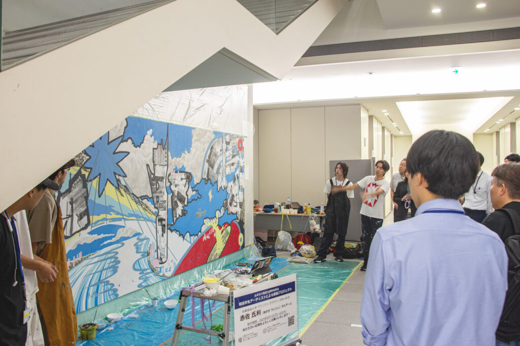 4日間の制作中、多くの社員の皆様が制作の様子を見守り、完成後には温かい言葉をいただきました。大学という社会から切り離された環境にいるアーティストたちにとって、自分たちの絵がこれだけの人に届くという経験は貴重で、素晴らしいものになりました。